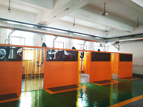 該套除塵系統現場所需除塵的區域包含二十余個焊接工位,根據用戶工況選用濾筒除塵器作為該套除塵系統的凈化主機;每個工位選用3m吸氣臂進行煙氣粉塵的收集,吸氣臂通過立柱直接固定;在吸氣臂與主管道連接的每條支管上安裝一個電動風閥,同時在本工位安裝就地控制盒控制電動風閥的啟閉,同時可反饋其啟閉信號系統到系統總電控柜,總電控柜根據信號自動調節風機頻率,以達到節約電能的目的;除塵器及風機放置在室外,風機配備有降噪箱、減震器等配套設施。煙囪采用鍍鋅螺旋風管材質,排氣口離地面高約15米,頂部安裝防雨罩;風機配備變頻啟動控制系統,主要元器件采用優質國產品牌,具有緊急停機等功能。