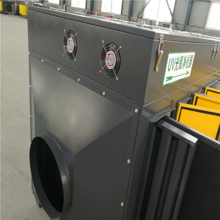 3.惡臭氣體利用排風(fēng)設(shè)備輸入到本凈化設(shè)備后,凈化設(shè)備運(yùn)用高能UV紫外線光束及臭氧對(duì)惡臭氣體進(jìn)行協(xié)同分解氧化反應(yīng),使惡臭氣體降解轉(zhuǎn)化成低分子化合物、水和二氧化碳,再通過(guò)排風(fēng)管道排出室外。