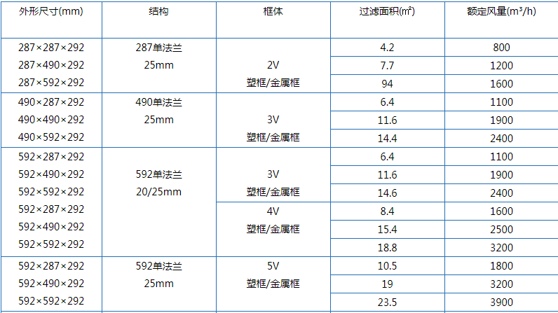 3、V 型大風量過濾器采用 ABS 工程塑料框架,重量輕,初阻力低此濾網(wǎng)特別適用于復雜的操作系統(tǒng),如:高風速系統(tǒng),可變風量系統(tǒng),高濕度或腐蝕性環(huán)境等特殊要求之系統(tǒng)。